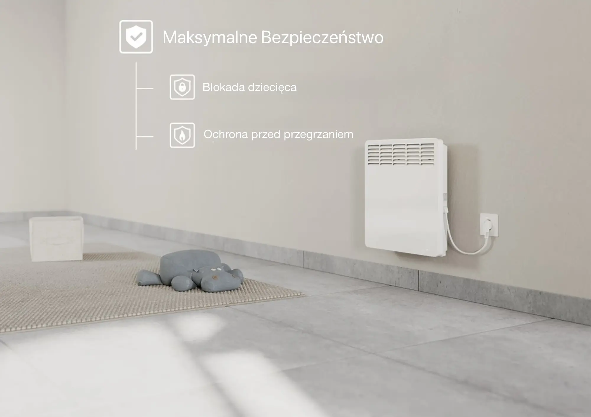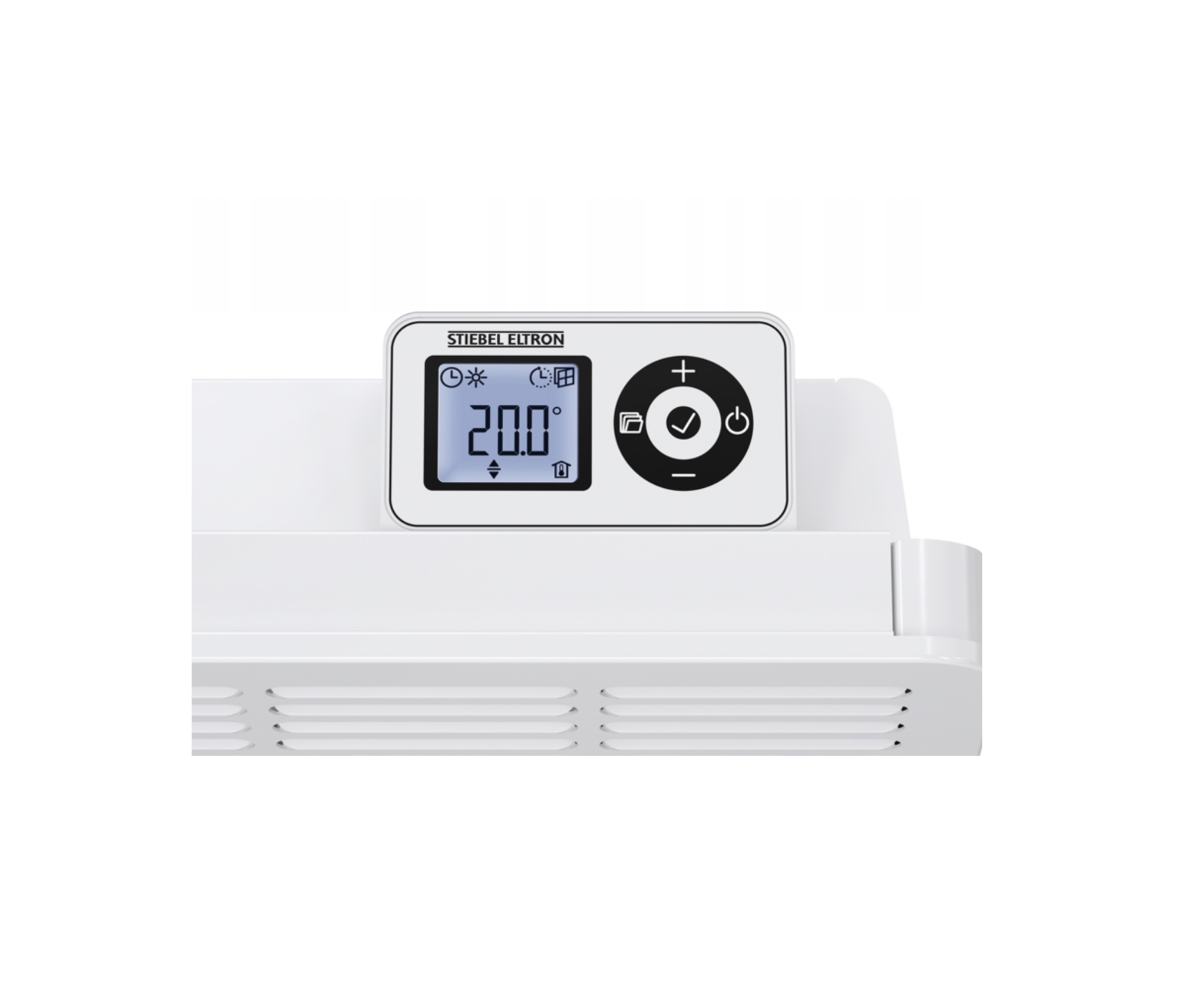 Grzejnik został wyposażony w panel sterowania z podświetlanym wyświetlaczem LCD, który ułatwia obsługę oraz precyzyjne ustawienie parametrów pracy. Programator tygodniowy, funkcja wykrywania otwartego okna oraz ochrona przed zamarzaniem pozwalają na energooszczędne i bezpieczne użytkowanie. Dodatkowo adaptacyjna regulacja automatycznie oblicza czas nagrzewania wstępnego, zapewniając optymalną temperaturę dokładnie wtedy, gdy jest potrzebna.