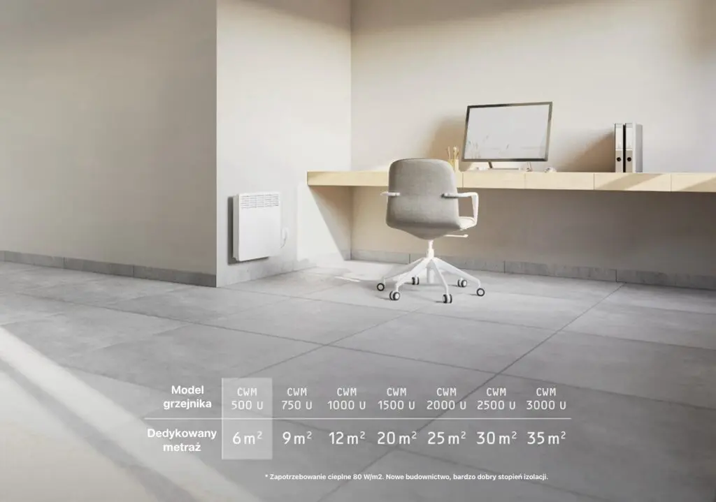 Konwektor CWM P to doskonały wybór jako ogrzewanie dodatkowe lub przejściowe, oferujący wysoką jakość, komfort cieplny i nowoczesne funkcje sterowania w kompaktowej formie.