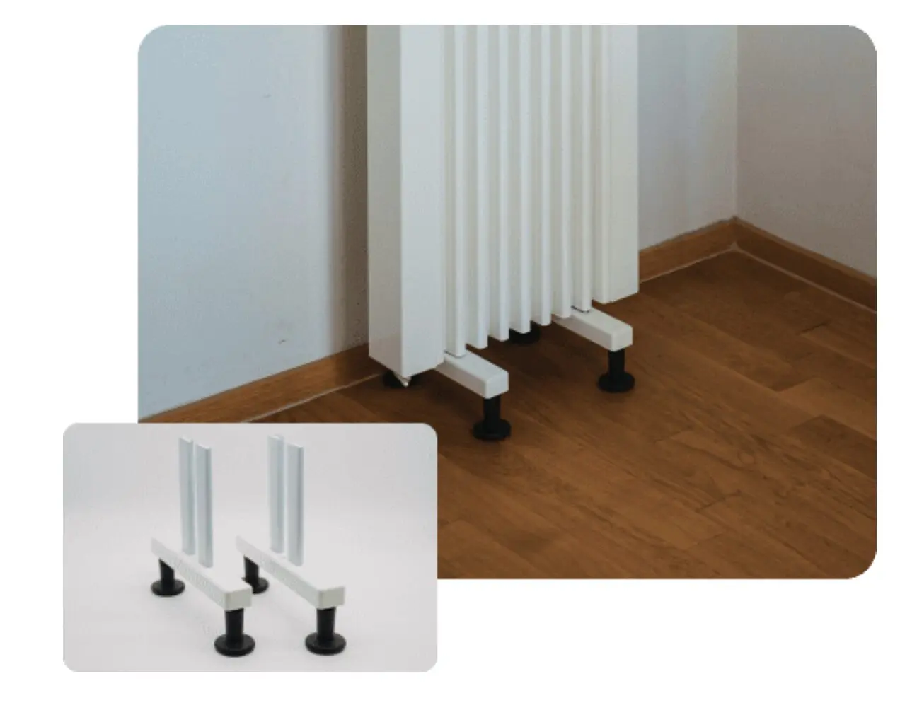Specjalnie zaprojektowane stojaki zapewniają idealną wysokość grzejnika od podłoża co sprawie, że pracuje on w optymalnych warunkach.